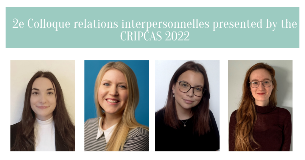 On May 26 and 27, the 2nd Colloque relations interpersonnelles hosted by CRIPCAS – Centre de recherche interdisciplinaire sur les problèmes conjugaux et les agressions sexuelles, took place, of which the director of the laboratory, Martine Hébert Ph.D., is a member.