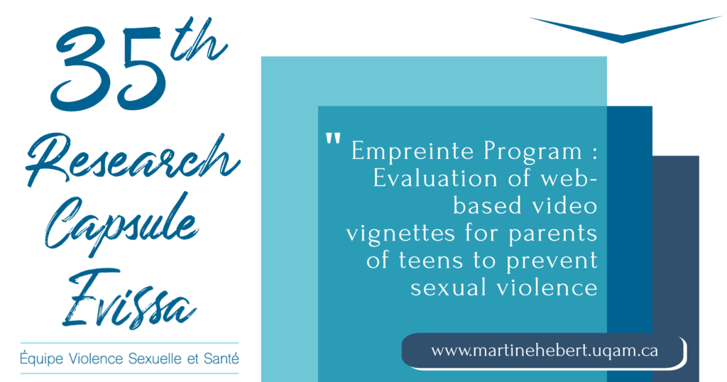 New ÉVISSA Research Capsule Available (#35) The Empreinte program is intended for high school students and their parents and aims to reduce social tolerance toward multiple forms of sexual violence. To learn more, click here.