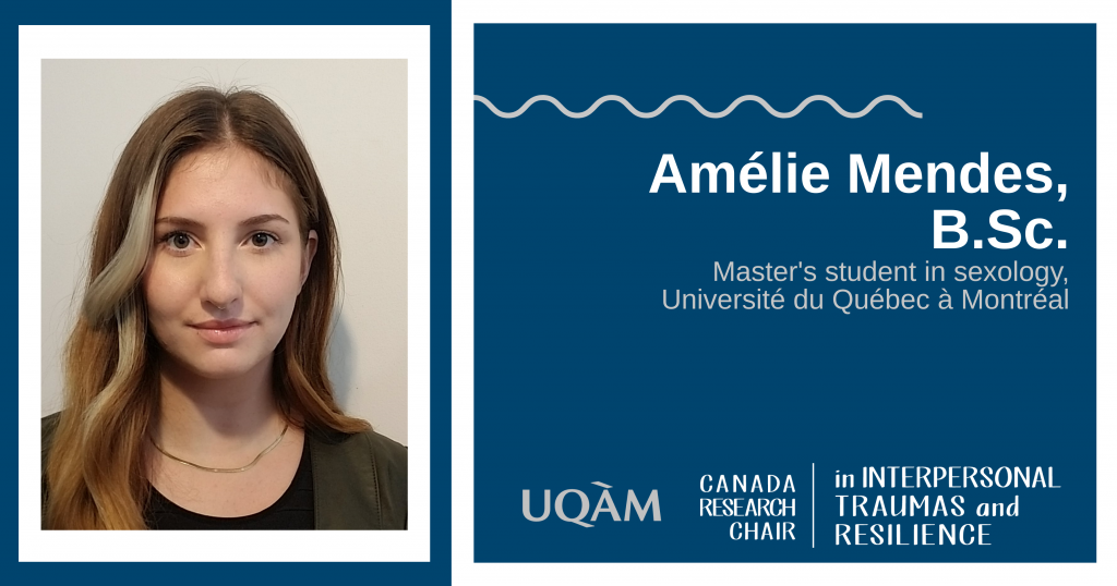 Amélie holds a bachelor’s degree in psychology from the Université de Montréal. This fall, she undertakes a master’s degree in sexology at the Université du Québec à Montréal under the supervision of Mylène Fernet, Ph.D. and Martine Hébert, Ph.D. As part of her master’s degree, she will be working on the Youth Ambassadors component of the SPARKX Project, a new dating violence prevention and healthy romantic relationships promotion program. Dr. Hébert’s expertise in quantitative methods combined with Dr. Fernet’s expertise in qualitative methods will allow Amélie to successfully complete her master’s thesis.