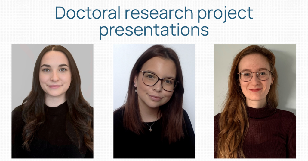 Doctoral research project presentations Congratulations to Élizabeth Hébert, Laurie Fortin, and Valéry Dubé who successfully presented their doctoral research project.