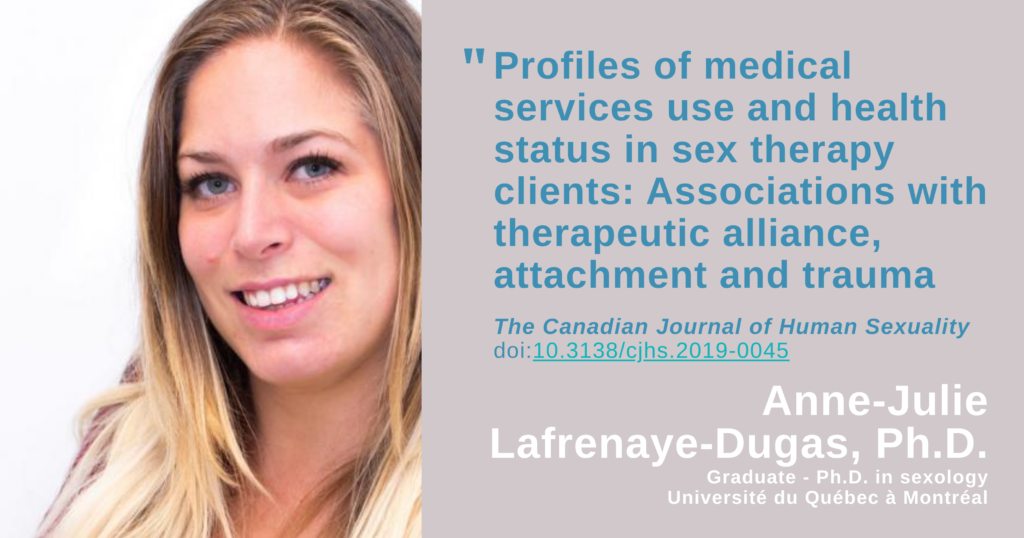 A research article from Anne-Julie Lafrenaye’s doctoral thesis, in collaboration with Natacha Godbout and Martine Hébert, director of the laboratory, recently appeared in The Canadian Journal of Human Sexuality.