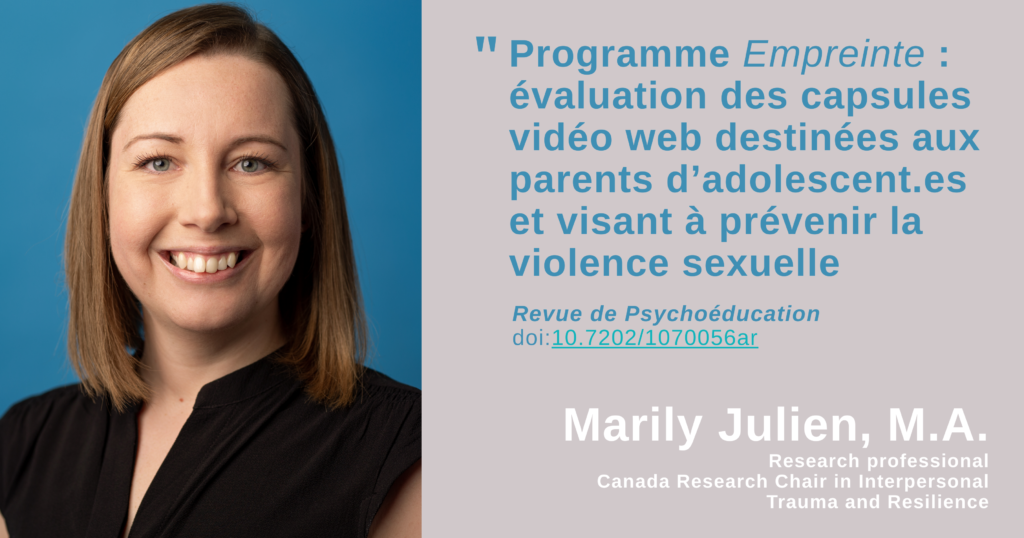 A new research article from Marily Julien’s masters thesis, Manon Bergeron and Martine Hébert, director of the laboratory was recently published in the Revue de Psychoéducation.
