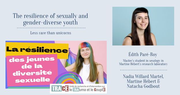 The article is entitled “La résilience des jeunes de la diversité sexuelle et de genre | Moins rare que des licornes”. Among other things, it describes the resilience factors that help alleviate minority stress, a collective responsibility that is far from unrealistic.