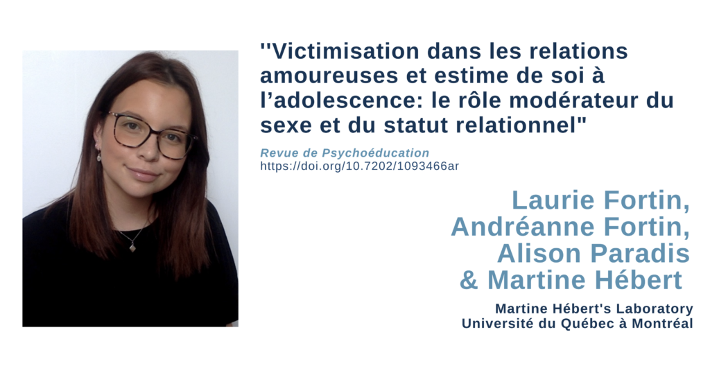 A research paper written by Laurie Fortin, Andréanne Fortin, doctoral students in psychology, Alison Paradis, and Martine Hébert, our lab director, was recently published in the journal Revue de psychoéducation.