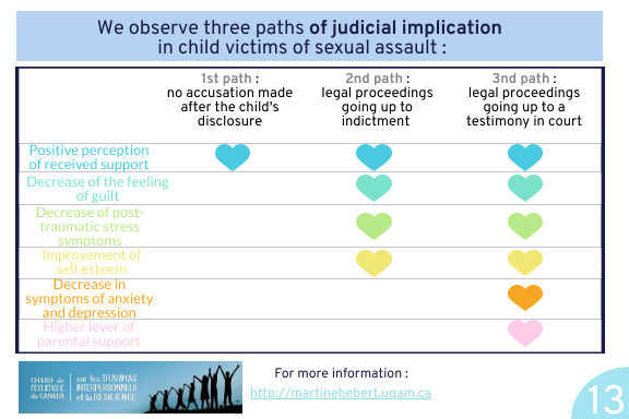 Postal Card (#13) Legal involvement is associated with more therapeutic gains and better recovery in child victims of sexual abuse. To learn more, click .