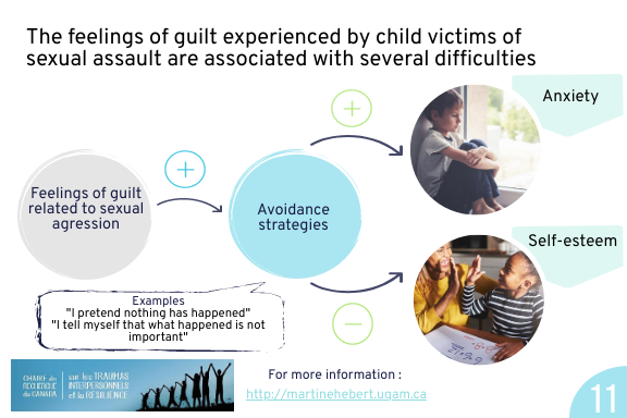 Postcard Available (#11) Reducing feelings of guilt and promoting healthy coping strategies following a sexual abuse are key intervention targets. For more information, click .