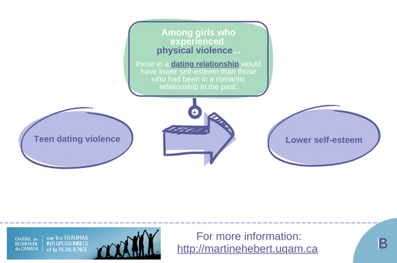 There is a relationship between teen dating violence and self-esteem. This relationship may vary according to the form of violence experienced, the sex, and the relationship status of the adolescent victims – three factors that should be considered in intervention.