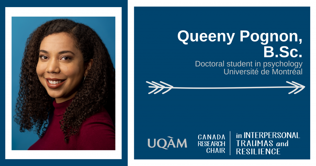 Queeny is also actively involved in student life and is part of the student committee of the Centre de Recherche Interdisciplinaire sur les Problèmes Conjugaux et les Agressions Sexuelles. She is currently writing an article as first author investigating the impact of cumulative traumatic experiences on the effectiveness of interventions designed for teenage girl victims of sexual abuse.
