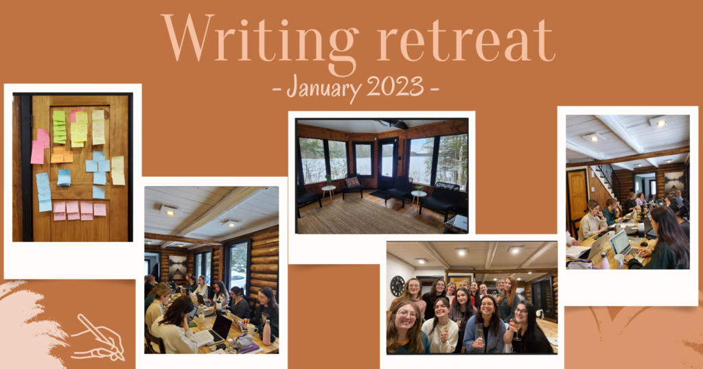 From January 20 to 22, several students from the lab participated in the first writing retreat organized by Martine Hébert’s lab. During the retreat, the students worked on their research projects and participated in several activities, including discussions on their stress management strategies. The retreat was also intended to build relationships among lab members.