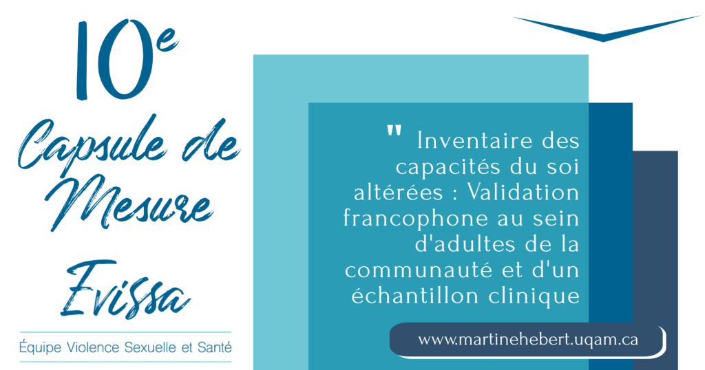 L’échelle de mesure Inventory of Altered Self-Capacities, évaluant la perception des capacités de soi, a été validée auprès de clients consultant en clinique de sexologie et de personnes de la communauté générale.
