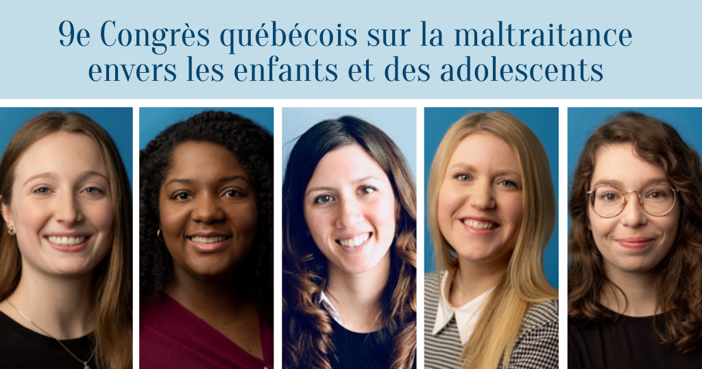 L’an dernier, cinq étudiantes du laboratoire ont présenté leurs travaux de recherche lors du 9e Congrès québécois sur la maltraitance envers les enfants et les adolescents. Deux ont été récompensées pour la qualité de leur affiche: Arianne Jean-Thorn (1er prix) et Laetitia Mélissande Amédée (3e prix). Félicitations!