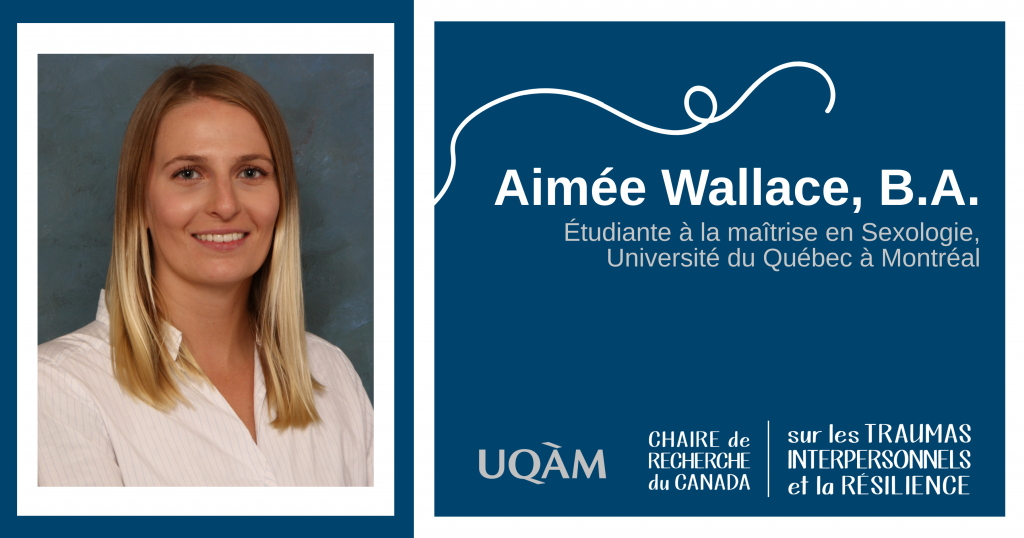 Elle débute actuellement sa maîtrise en sexologie à l’Université du Québec à Montréal sous la direction de Martine Hébert, Ph. D. et Rachel Langevin, Ph.D. Dans le cadre de son mémoire, elle examinera les facteurs de risques de la cyber-victimisation dans les relations amoureuses d’adolescent.es victimes d’agression sexuelle. Aimée s’est jointe au laboratoire de recherche afin de bénéficier de l’expertise de Dre. Hébert concernant l’étude de la violence sexuelle et de la violence en contexte de relations intimes. Elle envisage poursuivre ses études au doctorat dans l’objectif de mettre sur pied des programmes de prévention pour les victimes de violence sexuelle.