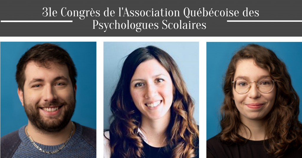 Le 31e Congrès de l’Association Québécoise des Psychologues Scolaires (AQPS) a eu lieu il y a exactement un an. Lors de cet événement, trois étudiant.es ont fièrement représenté les travaux du laboratoire de Martine Hébert.