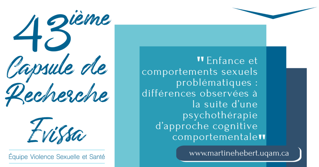 L’étude vise à déterminer dans quelle mesure les enfants présentent des difficultés concomitantes aux comportements sexuels problématiques et comment ces difficultés évoluent en cours d’intervention. Pour en apprendre davantage, consulter la capsule .