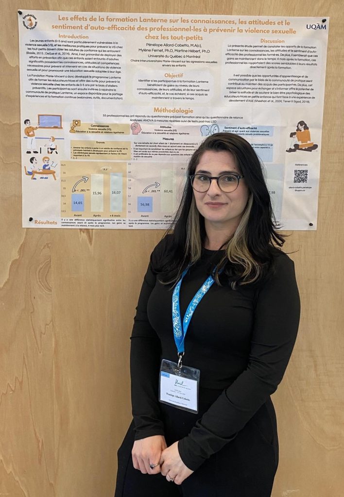 Pénélope Allard-Cobetto, finissante à la maîtrise en sexologie, profil recherche-intervention, a aussi présenté une étude visant à identifier si les participant.es à la formation Lanterne bénéficient de gains au niveau de leurs connaissances, de leurs attitudes, et de leur sentiment d’auto-efficacité, et, le cas échéant, si ces acquis se maintiennent à travers le temps.