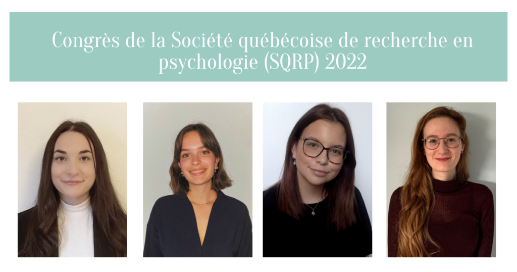 Dans le cadre du 44e congrès annuel de la SQRP, qui se tenait à St-Sauveur, du 20 au 22 mai dernier, 4 étudiantes du laboratoire ont eu l’opportunité de présenter leurs résultats de recherche. Félicitations pour vos présentations! Vous pouvez consulter le tout en cliquant sur le lien associé aux noms des présentatrices.