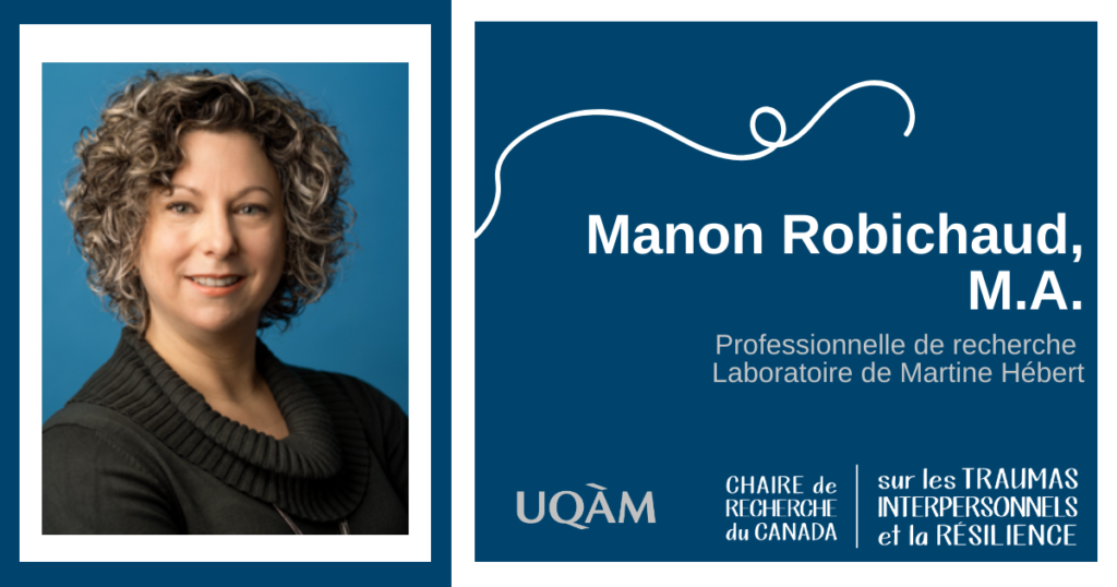 En tant que professionnelle de recherche, Manon est impliquée au sein du Laboratoire de Martine Hébert depuis 2001 tout en participant à divers projets tels qu’ÉVISSA (Équipe Violence sexuelle et Santé), PAJ (Parcours Amoureux des Jeunes) et la Chaire de recherche du Canada sur les traumas interpersonnels et la résilience. De plus, Manon assure la coordination des projets de recherche du laboratoire relatifs aux enfants et adolescent.es victimes d’agression sexuelle. Depuis 2005, elle agit aussi à titre de coordonnatrice des banques de données et des analyses de la Chaire interuniversitaire Marie-Vincent sur les agressions sexuelles envers les enfants, dont Martine Hébert est cotitulaire.