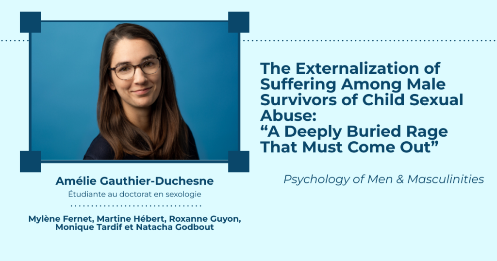 Un article rédigé par Amélie Gauthier-Duchesne, étudiante au laboratoire, Mylène Fernet, Martine Hébert, directrice du laboratoire, Roxanne Guyon, Monique Tardif et Natacha Godbout a été publié dans la revue Psychology of Men & Masculinities.