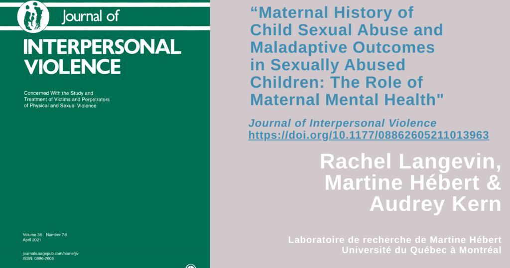 Un nouvel article rédigé par Rachel Langevin, Martine Hébert, directrice du laboratoire et Audrey Kern est récemment paru dans la revue Journal of Interpersonal Violence.