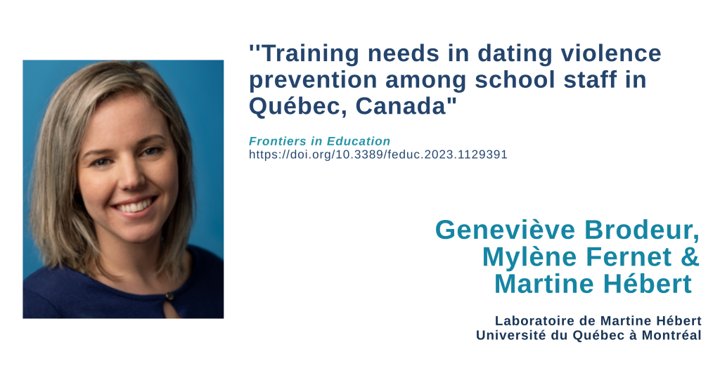 Félicitations à Geneviève Brodeur, étudiante au doctorat interdisciplinaire en santé et société, Mylène Fernet et Martine Hébert pour la récente publication de leur article dans la revue Frontiers in Education.