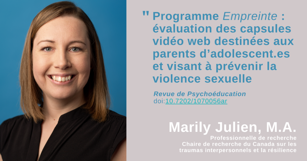 Un article tiré du mémoire réalisé par Marily Julien, Manon Bergeron et Martine Hébert, directrice du laboratoire est récemment paru dans la Revue de Psychoéducation.