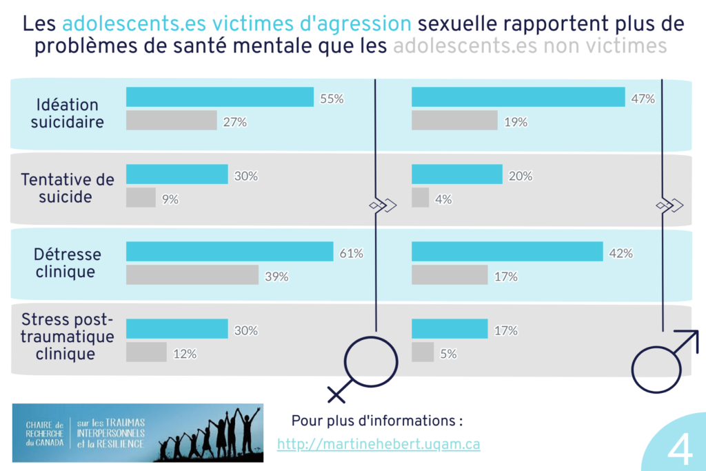 Nouvelle Carte Postale Disponible Une détection précoce des symptômes reliés aux problèmes de santé mentale chez les adolescents.es victimes d’agression sexuelle aiderait à prévenir leur maintien. Cliquer pour en apprendre davantage.