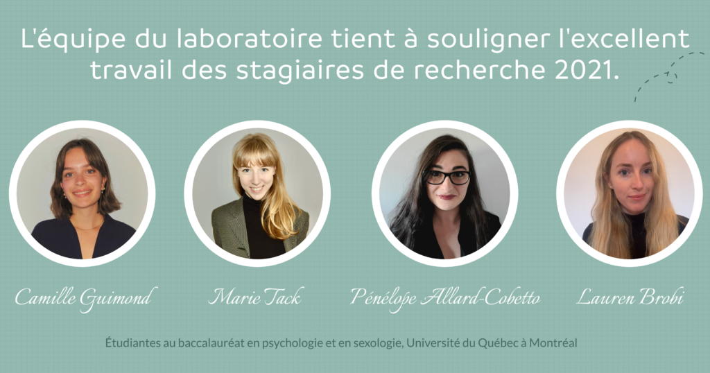 Nous tenons à vous présenter quatre étudiantes qui ont réalisé un stage de recherche au cours des derniers mois. Chacune à leur manière, elles ont contribué aux différents travaux du laboratoire.